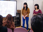 報告は、参加学生がバンコクとチェンマイで実施したフィールド調査結果に重点を置いて行われました。一例として、タイにおけるセックスワーカーへの支援、教育を行っているNGO団体EMPOWER(Education Means Protection Of Women Engaged in Recreation)での調査について報告がありました。セックスワーカーが語学や性感染症予防などについて楽しく学べるよう工夫された施設をスライドで紹介し、セックスワーカーへのインタビュー調査では、調査者に対するプライバシーに配慮する必要があったことを報告しました。バンコクやチェンマイでの観光や、AIT学生との交流の様子もスライドで紹介され、会場は終始和やかな雰囲気でした。 微音祭での報告会ということもあり、本学学生のみならず、開発・ジェンダー論コースに入学を希望する方、タイに関心がある方など、学外からの参加を得ました。微音祭での公開報告会は初の試みでしたが、AITワークショッププログラムの締めくくりというだけではなく、学内外にプログラムの魅力を広報する貴重な機会となりました。 |